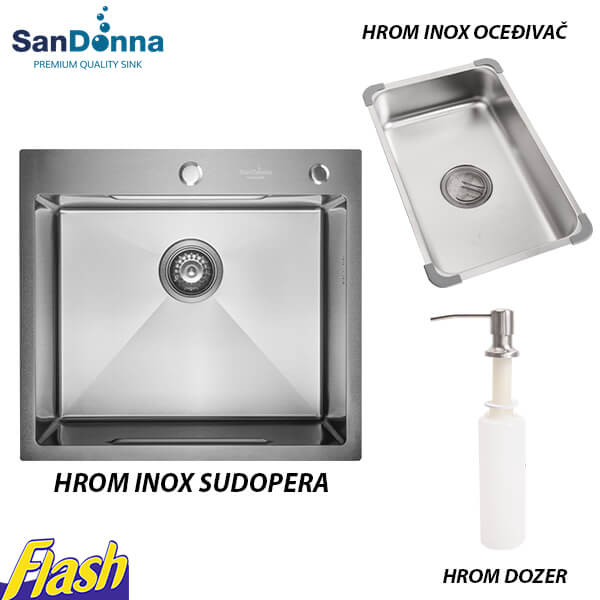 SET – INOX Hrom Sudopera + Hrom Dozer + Hrom Sifon + Hrom INOX oceđivač.